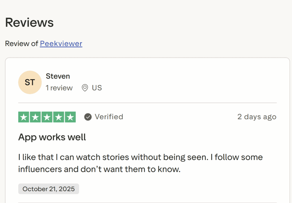 Users shared in their Peekviewer review that the tool works great for both public and private accounts.They liked that it’s really easy to use and that the dashboard is simple, making saving posts and stories quick and hassle-free. Many also mentioned that this Instagram deleted posts viewer is completely anonymous, so everything stays private and safe.