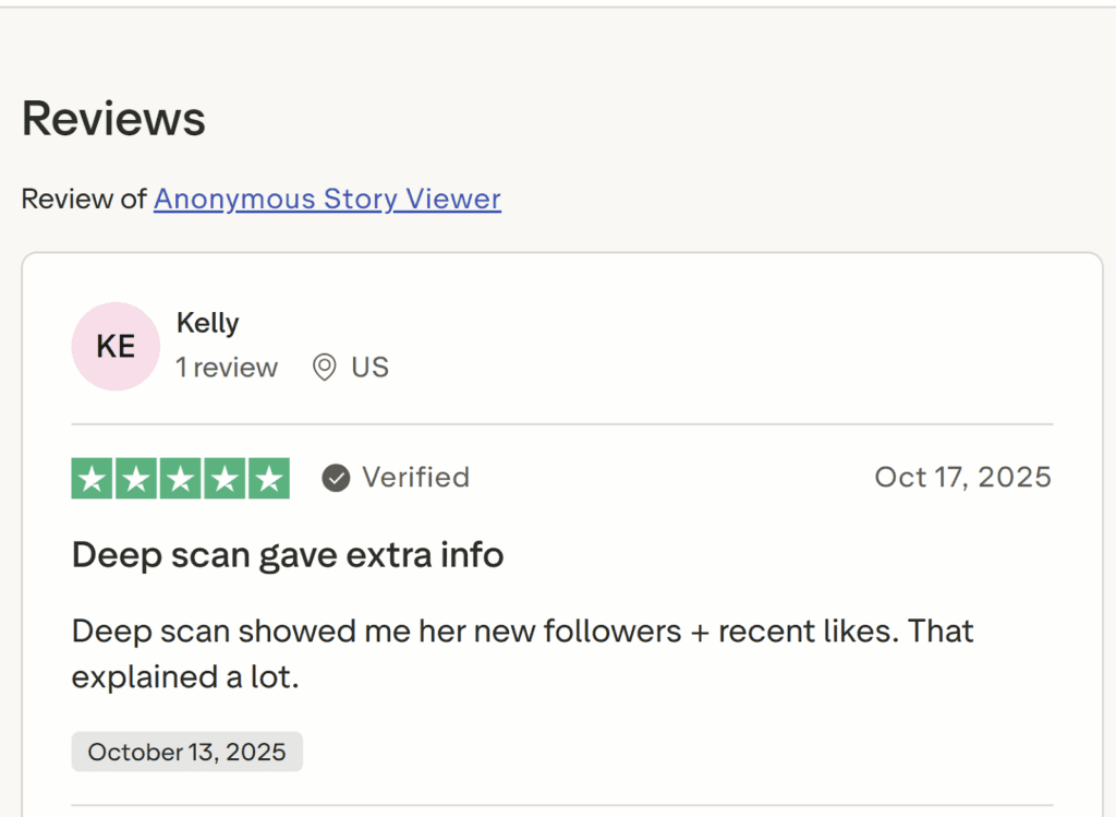 Users said Anonymous Story Viewer lets you see everything from Instagram accounts.They liked how fast the Instagram deleted story viewer is to use and that it works well on phones, tablets, and computers. Many also said this deleted Instagram post viewer helps save posts and stories without any trouble.